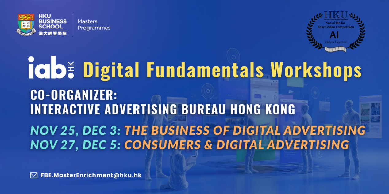 We are excited to invite you to the IABHK Digital Fundamentals Workshop, co-organized by the Interactive Advertising Bureau Hong Kong (IABHK), as part of the AI Video Festival – Social Media Short Video Competition. This is a unique opportunity to deepen your understanding of digital advertising and gain practical skills from industry experts.